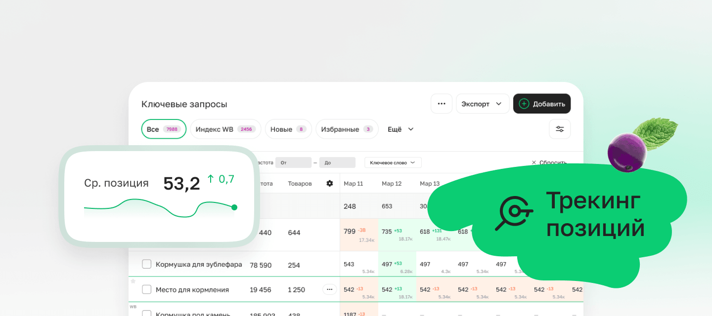 Отслеживайте и улучшайте позиции по ключевым запросам в поиске Wildberries. Узнавайте, сколько просмотров карточки дает тот или иной ключ