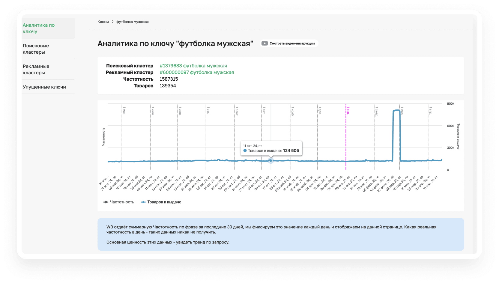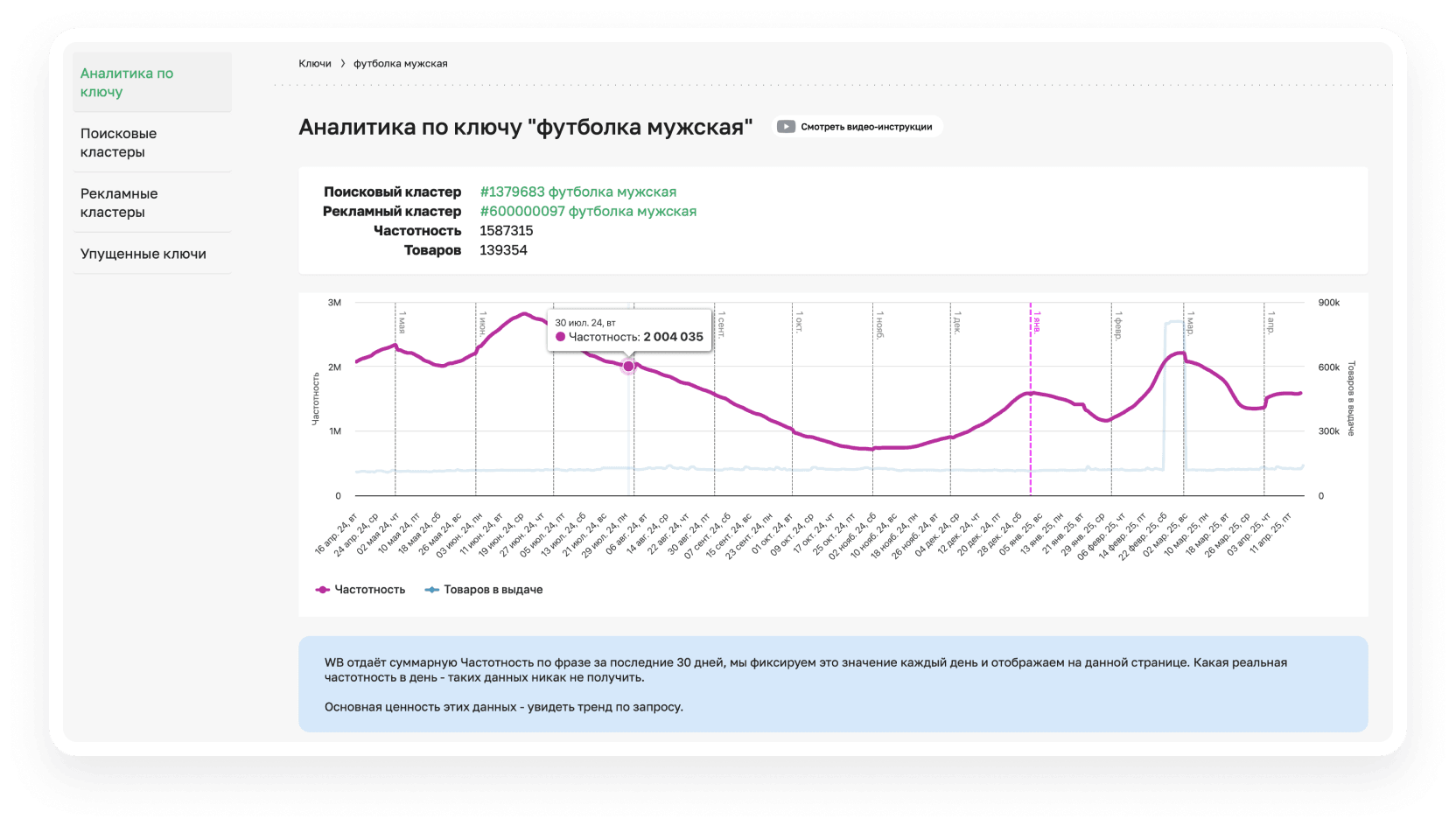 Узнайте, как часто пользователи ищут конкретный товар в поиске ВБ и как меняется частотность запросов в зависимости от сезона.