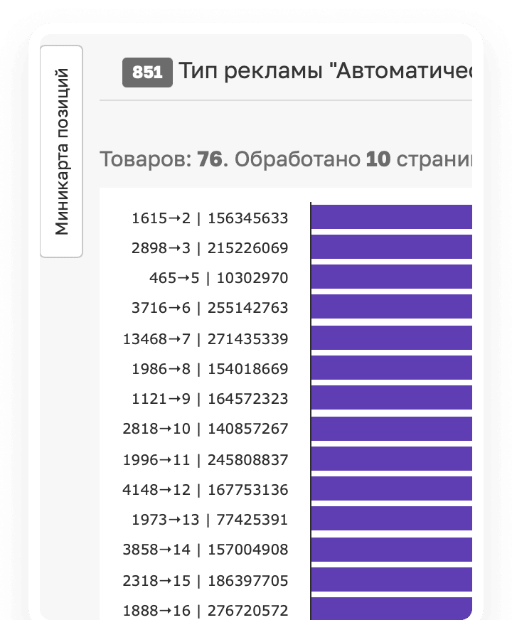 Используйте бот для рекламы Wildberries от Sellego, чтобы узнавать реальные рекламные ставки в АРК и Аукционе. Инструмент помогает настраивать более эффективную рекламу на Вайлдберриз даже при минимальном рекламном бюджете: выставляйте точные ставки CPM в своих кампаниях и повышайте шансы на покупку товара без слива рекламного бюджета.