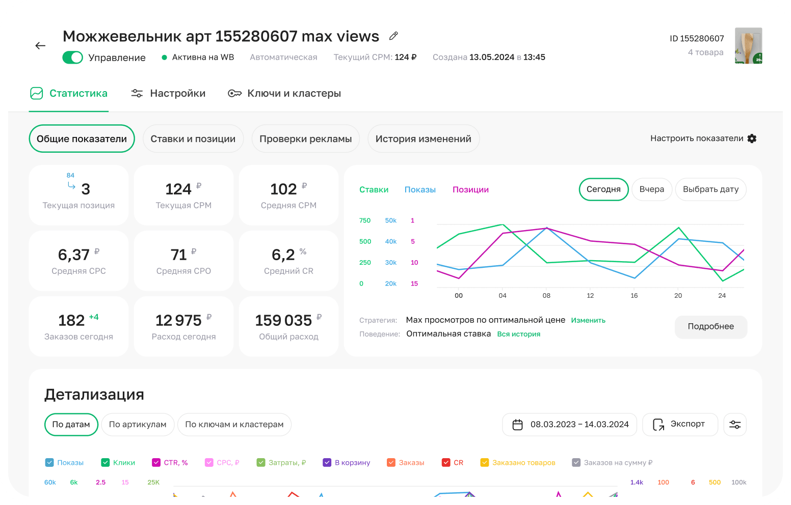 - Дождаться отображения запущенных на ВБ рекламных кампаний.