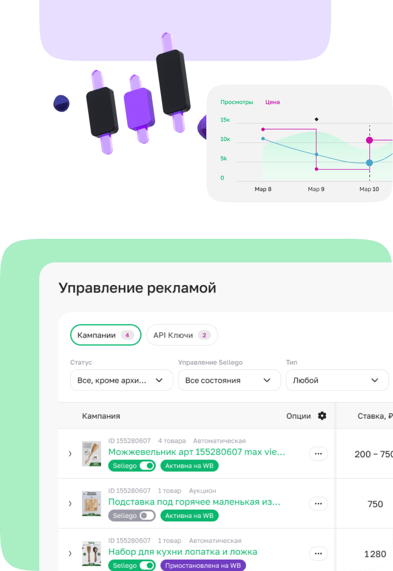 Для настройки автоматического управления ВБ рекламой через биддер Sellego необходимо: